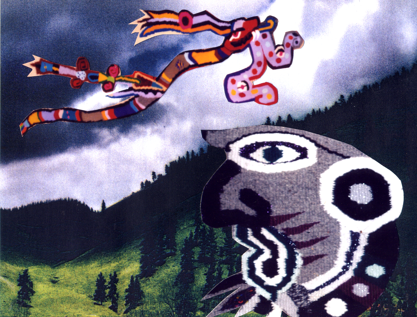 Weavings mixed into collage.