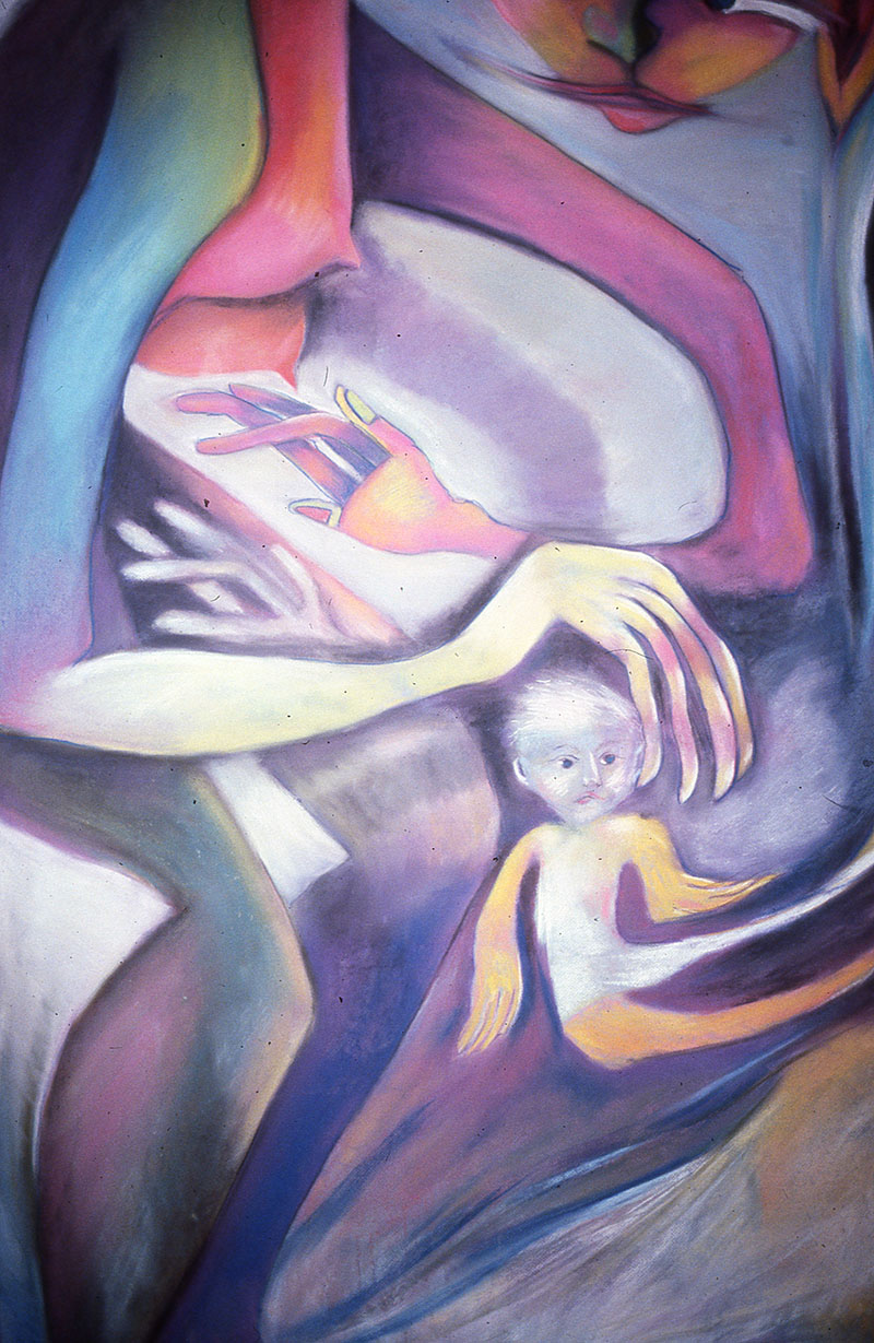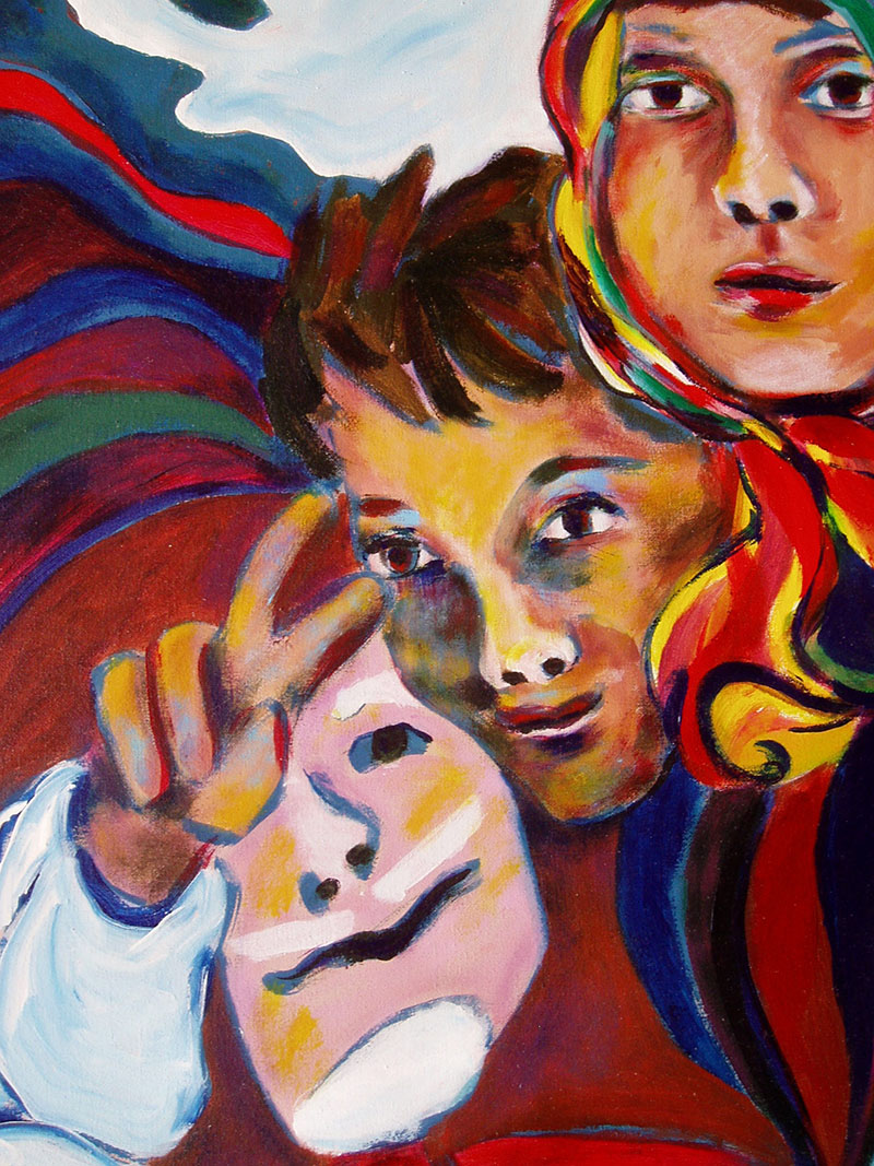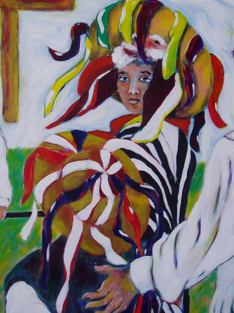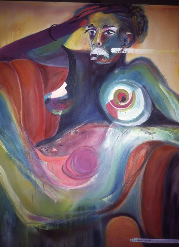 Approximately 2.5x3', acrylic on canvas.